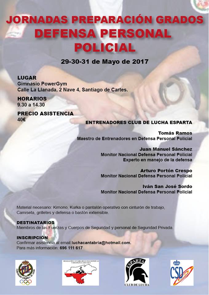 Los días 29, 30 y 31 de mayo celebraremos unas jornadas de actualización y preparación de Defensa Personal Policial en el PowerGym de Cartes.