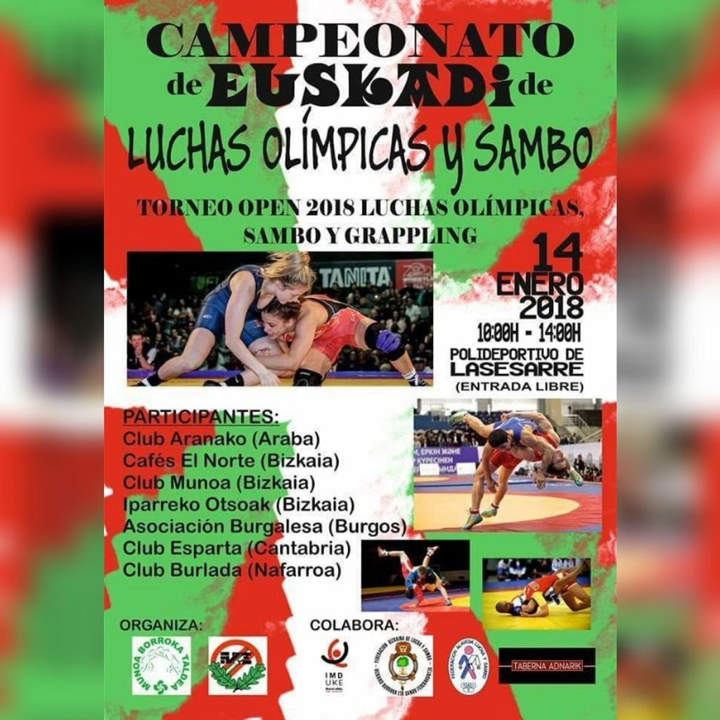 El Club de Lucha Esparta, tendrá su representación dentro del Campeonato realizado el día 14/01/2018 en el Polideportivo de Lasesarre a las 10:00 am.